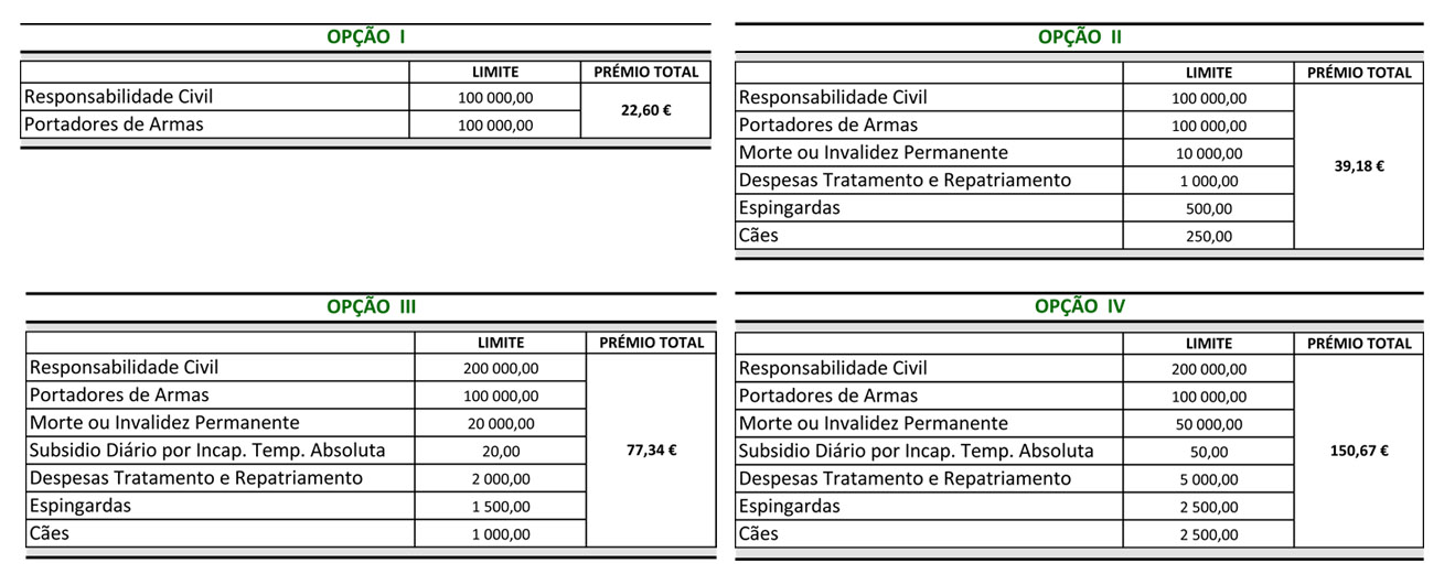 • Acidentes Pessoais que ocorram no local da caça e durante a prática da mesma;